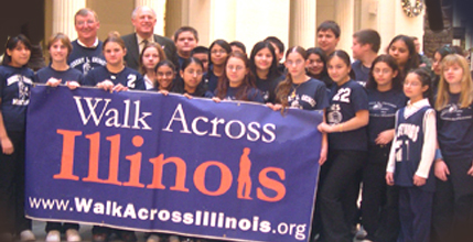 The Walk Across Illinois Kids Program builds on the success of Lt. Governor Quinn�s Walk Across Illinois Initiative, which is helping more than 9,000 Illinois residents complete their own 167-mile virtual walks across the state.