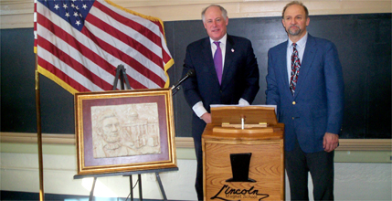 Lt. Governor Pat Quinn and Abelardo Ghoulam celebrate the life and legacy of President Abraham Lincoln by donating artwork to Springfield school